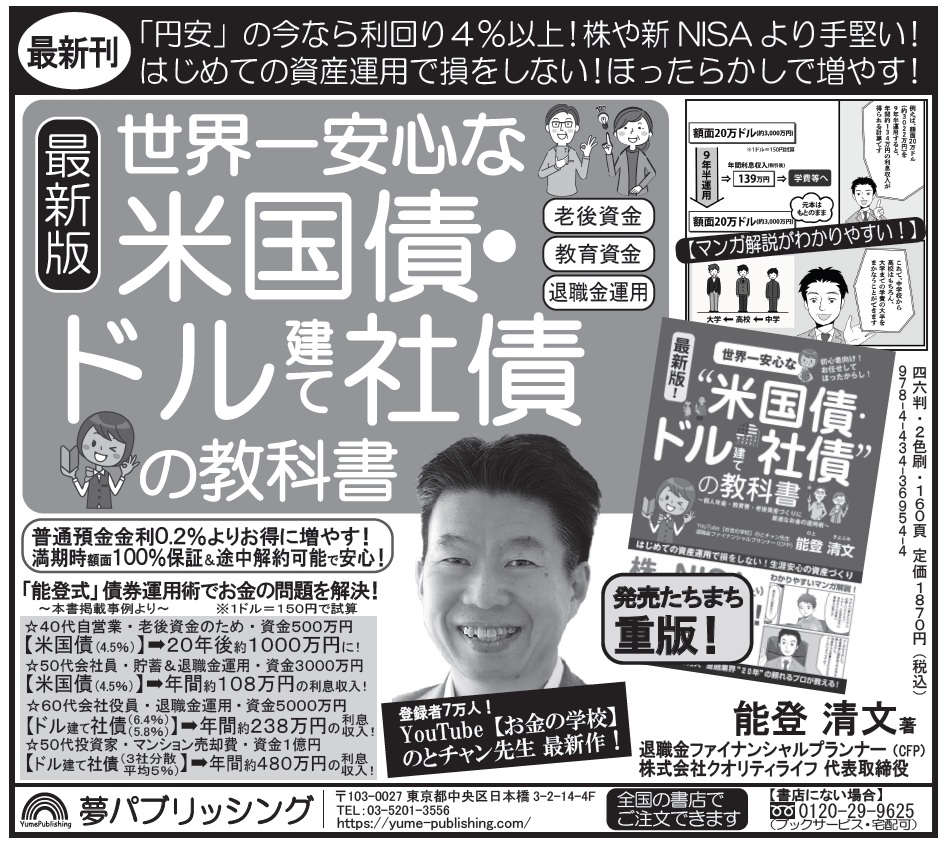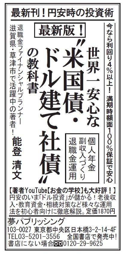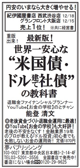 新刊『最新版!世界一安心な“米国債・ドル建て社債”の教科書』(日経新聞・半5段)2025.12.12