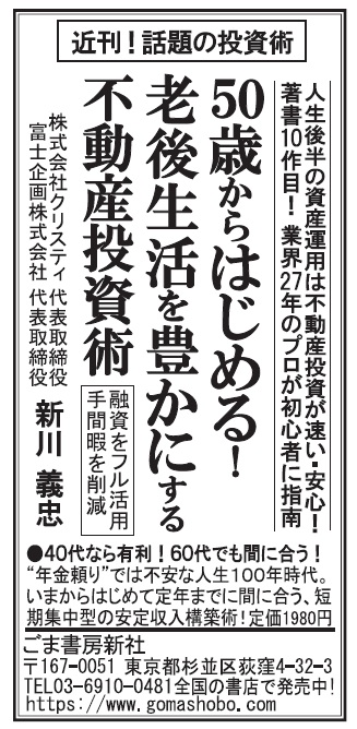 近刊『50歳からはじめる!老後生活を豊かにする不動産投資術』(日経新聞)2025.9.9