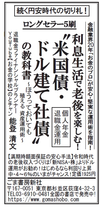 好評4刷『利息生活で老後を楽しむ! “米国債・ドル建て社債”の教科書』(日経新聞)2025.7.24
